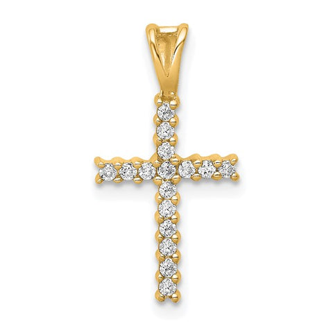 14K White gold natural diamond cross, sixteen round full cut diamonds, prong set, .16ctw, 20 x 10mm. Chain sold separately.